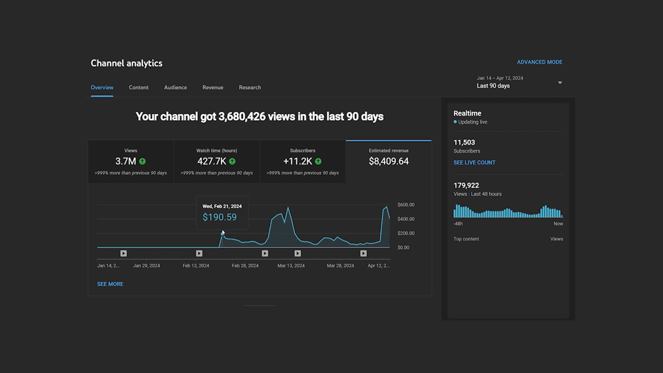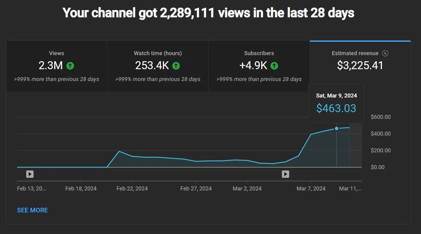 This is a faceless documentary channel and has seen some amazing growth since I helped strategize, provide killer ideas, and help execute on a large scale. This channel is now making $5,000 per month and growing very fast by 700-1,000 subscribers per day!